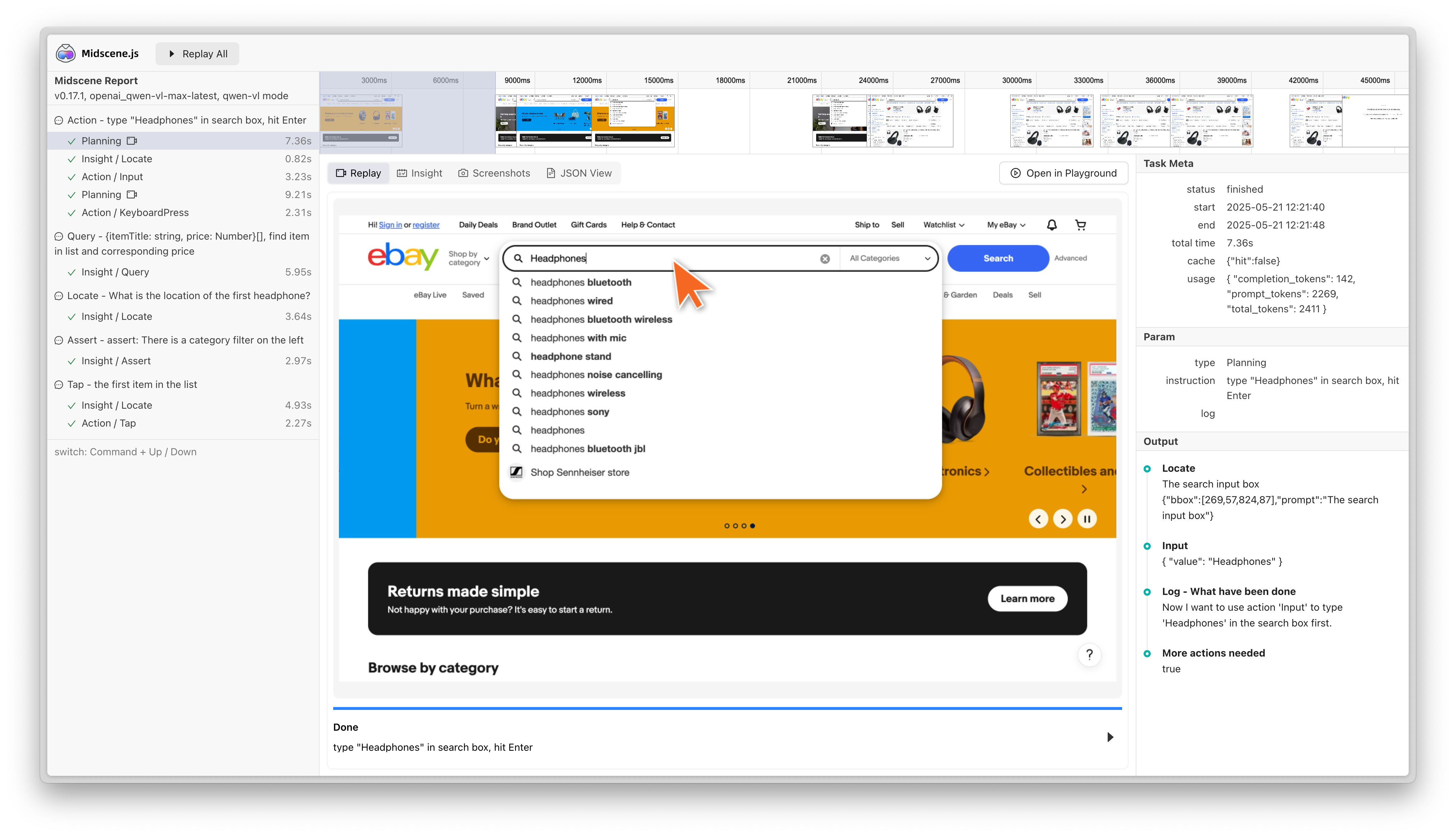 Midscene's caching mechanism is based on input stability and output reusability. When the same task instructions are repeatedly executed in similar page environments, Midscene will prioritize using cached results to avoid repeated AI model calls, significantly improving execution efficiency.
